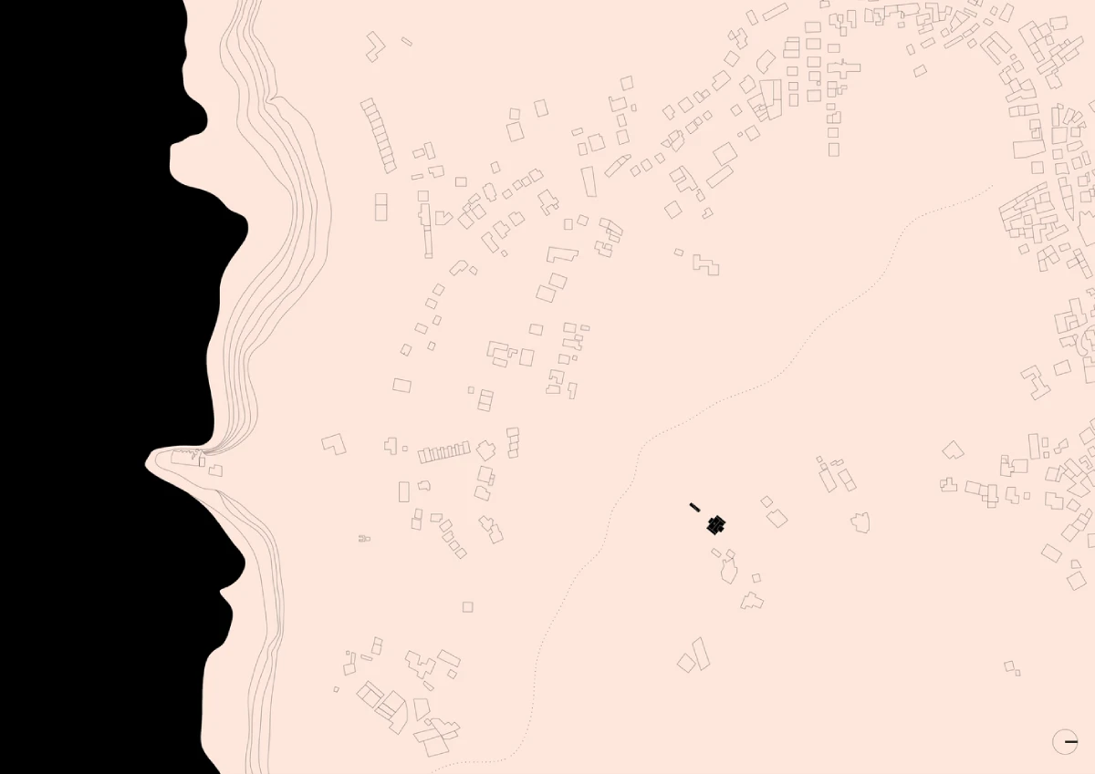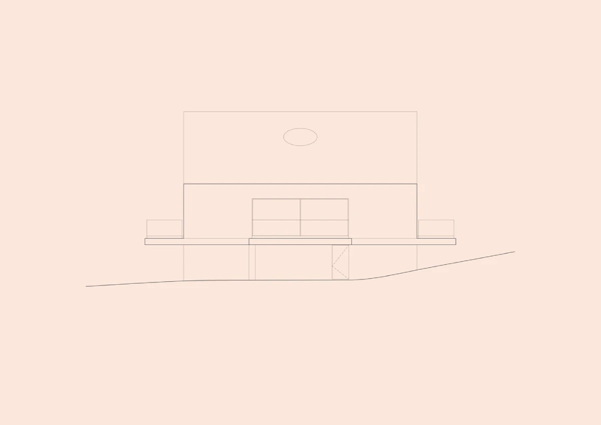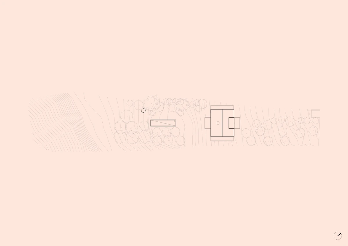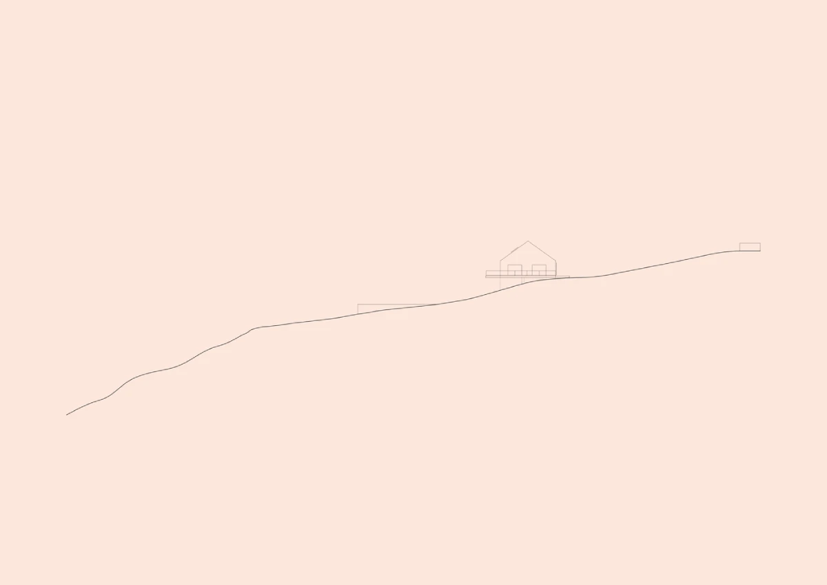 رابطه با توپوگرافی (پستی و بلندی زمین) برای ما بسیار مهم بود: خانه به گونهای طراحی شده که با حداقل تماس ممکن بر روی زمین قرار بگیرد و به بافت موجود اجازه دهد که از زیر آن عبور کند. چهار دیوار حائل از یک سکوی صلیبی شکل پشتیبانی میکنند که خانه روی آن قرار گرفته و بالای زمین معلق است.