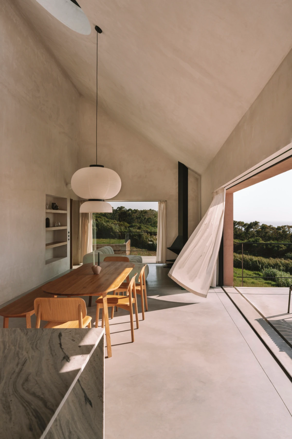 یک خانه ویلایی، به دور از الزامات روزمره، آزادی و امکان آزمون و خطای بیشتری را فراهم میکند. این خانه باید بزرگ، غیررسمی، و از نظر فیزیکی قابل لمس باشد و ریتم و زمان خودش را به محیط تحمیل کند. ما میخواستیم شکلی بسیار ساده برای این خانه بسازیم و عناصری را که در ساختمانهای محلی تاریخی استفاده میشدند، به روشی مدرن و امروزی با هم ترکیب کنیم.