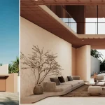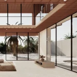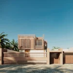 پوسته آجری در تضاد با آفتاب شدید قشم، نقشی کلیدی در تأمین آسایش حرارتی فضاهای داخلی دارد. در ادامه، با ساماندهی محوطه، این پوسته به فضای باز نیز کشیده شد و به صورت سایهبان نیمهشفاف بر فراز فضاهای استخر و پارکینگ نیز ادامه یافت؛ تداومی که انسجام کلی پروژه را رقم میزند.