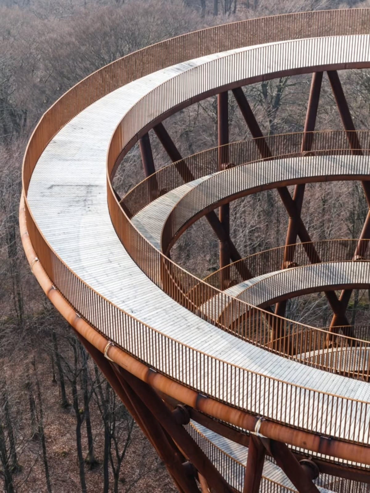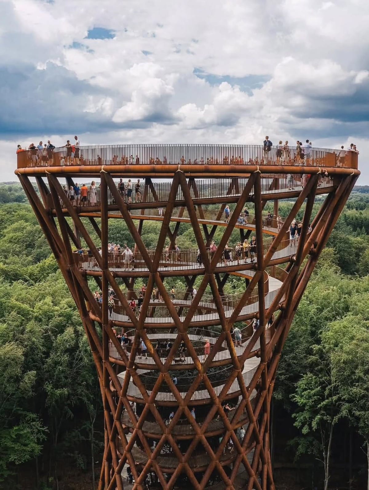 برج جنگل در مجموعه Camp Adventure Park مقصدی نوین و خاص برای تجربهای متفاوت در دل طبیعت است. یک پیادهراه چوبی به طول ۹۰۰ متر که به برجی دیدبانی به ارتفاع ۴۵ متر متصل میشود، فرصتی بینظیر فراهم میکند تا بازدیدکنندگان در میان درختان قدم بزنند و از زاویهای تازه، طبیعت بکر جنگل حفاظتشده را تجربه کنند. برج و پیادهراه بهواسطه یک رمپ پیوسته بهطور یکپارچه به هم متصل شدهاند؛ بهگونهای که دسترسی به جنگل برای همگان ــ بدون توجه به شرایط جسمانی ــ امکانپذیر باشد.