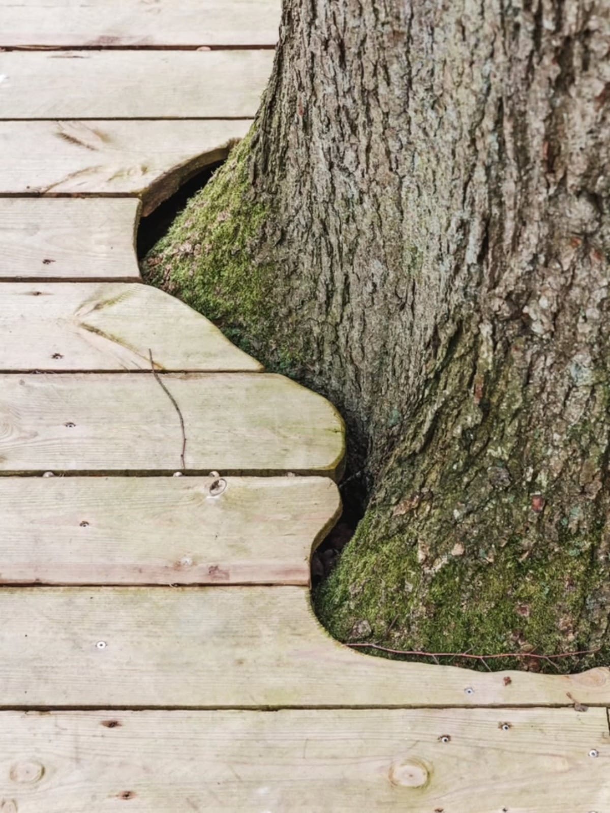 مسیر پیادهروی در میان درختان به آرامی و حساسیت از میان گونههای مختلف جنگل عبور میکند، در حالی که کمترین میزان اختلال در محیط ایجاد میشود. طراحی مسیر تاجپوش درختان به دو بخش پیادهراه مرتفع و پیادهراه پاییندست تقسیم شده است. برج و مسیر پاییندست در بخشهای جوانتر جنگل قرار گرفتهاند، در حالیکه مسیر مرتفع از قدیمیترین بخشهای جنگل عبور میکند. همچنین، در امتداد مسیر مرتفع مجموعهای از فعالیتها برای گروههای مختلف کاربران فراهم شده است تا از ویژگیهای جنگل بیاموزند و لذت ببرند.