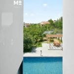 در پروژهی مهستان، ساختمان ویلا را در مرکز سایت قرار دادیم تا امکان ایجاد دو حیاط مجزا فراهم شود. حیاط عمومی بههمراه ورودی اصلی و زمین بازی در بخش جنوبی سایت و حیاط خصوصی بههمراه استخر در بخش شمالی جای گرفت.