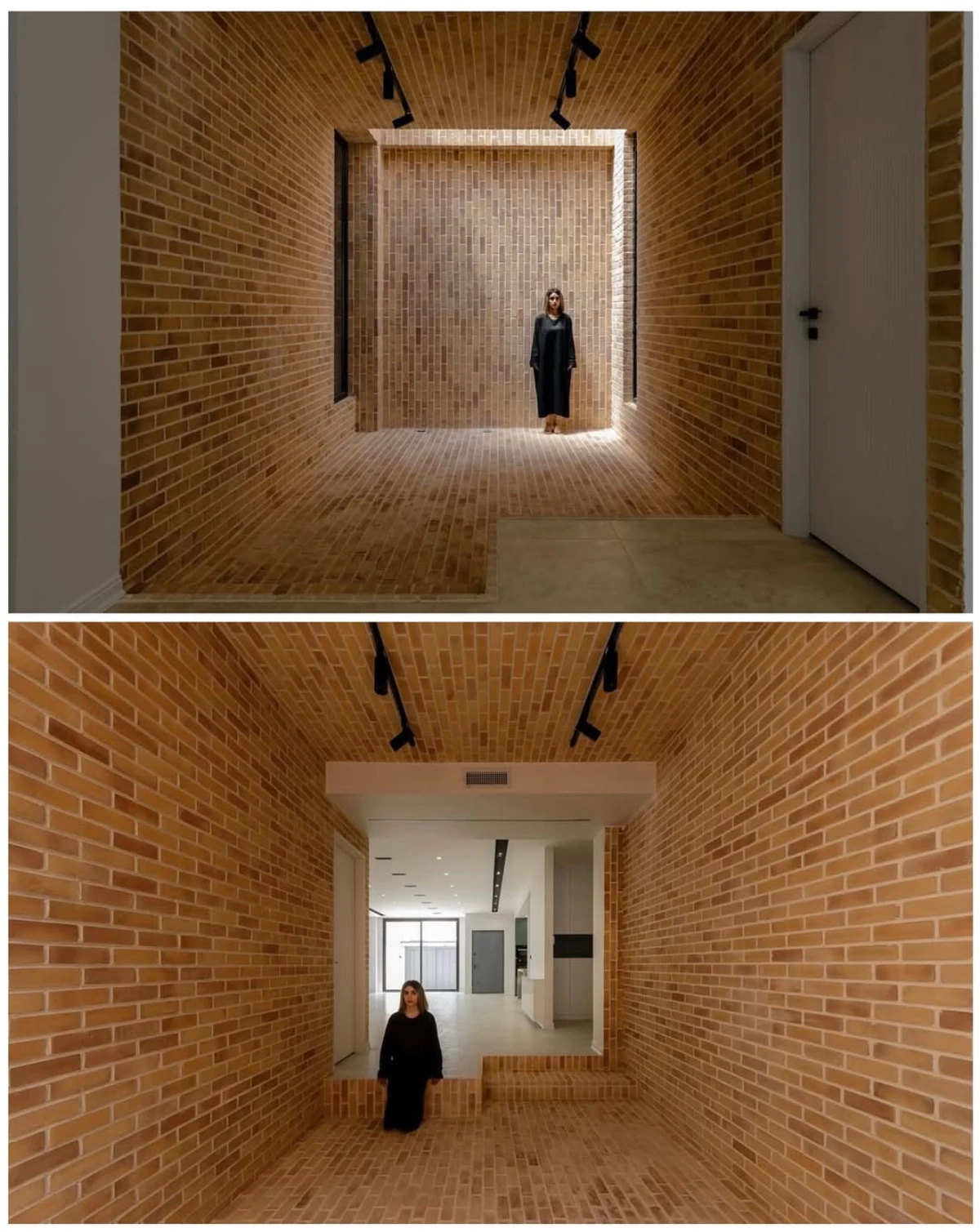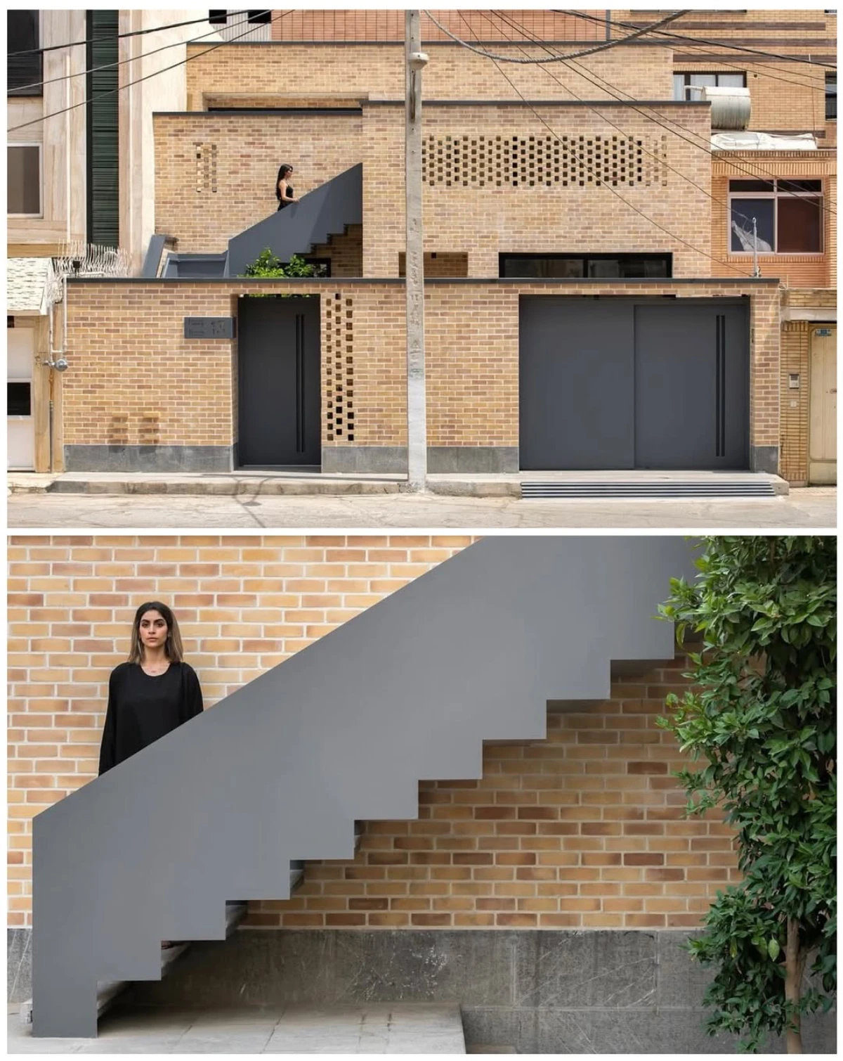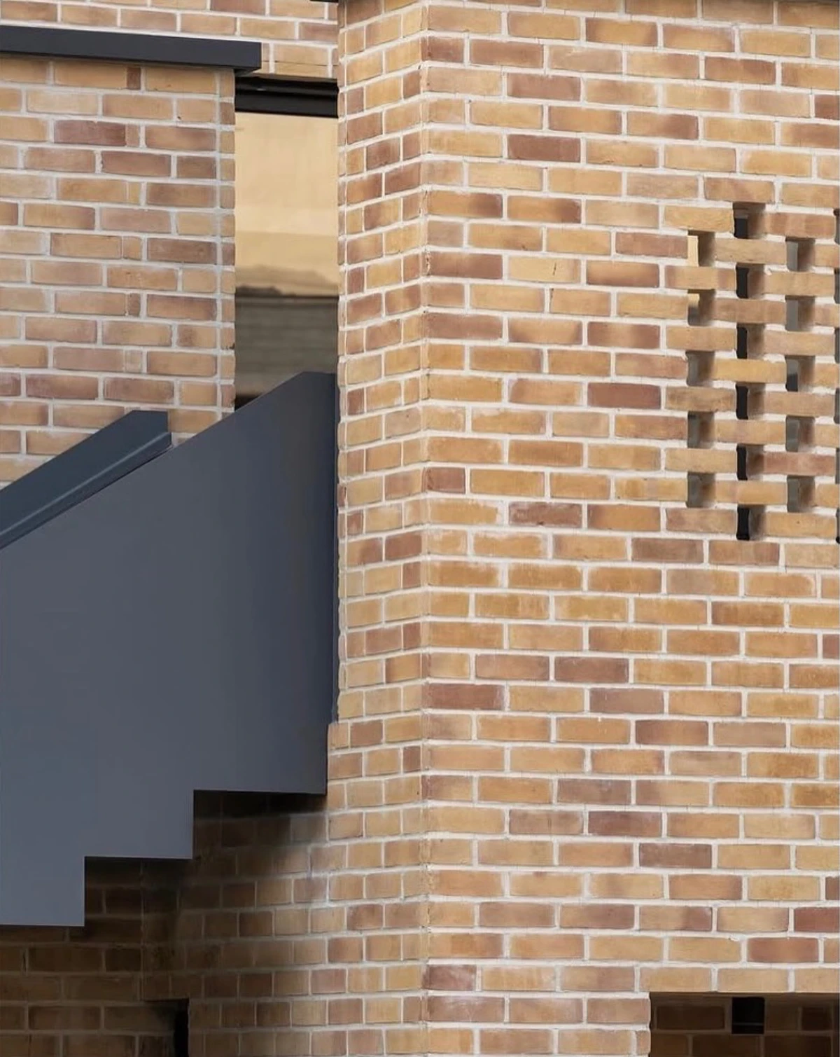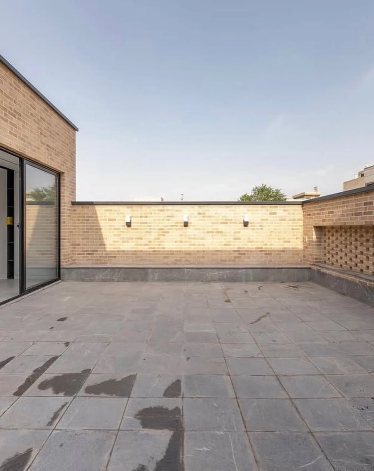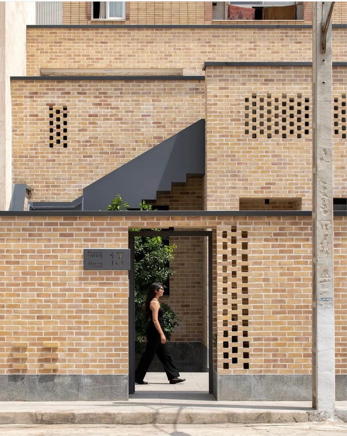 حجمی آجرپوش که دیوارهایش با بافتى زبر و جزئياتى ساده، حريمى آرام اما قاطع براى درون و بيرون، مى سازد.