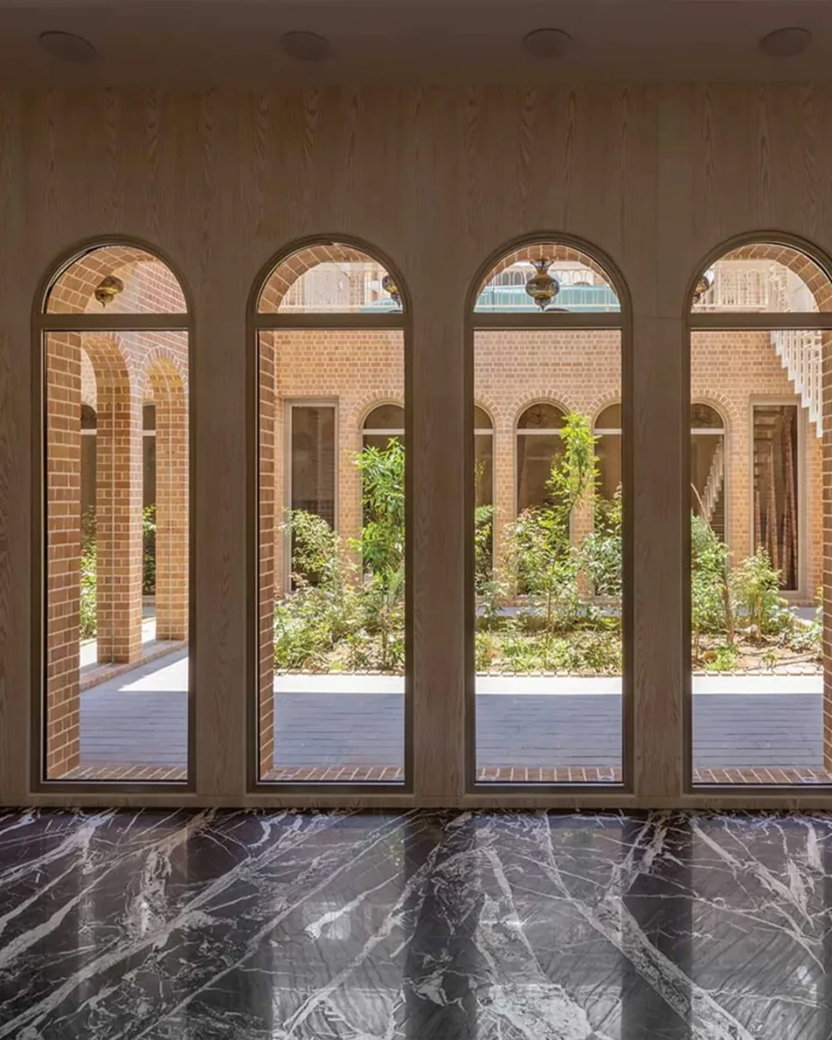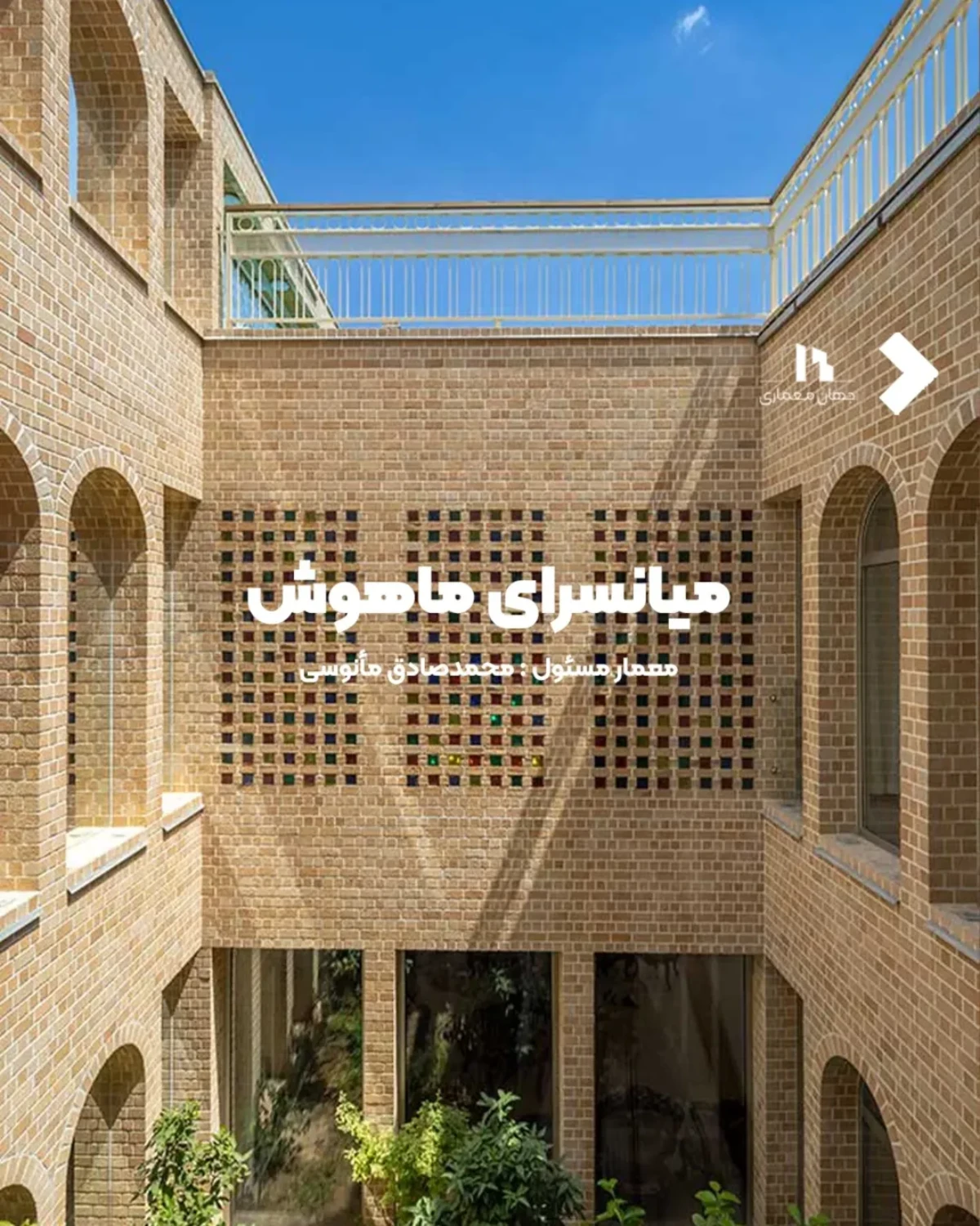 ▪️پروژهی «میانسراى ماهوش» در خمینیشهر اصفهان با هدف پاسخ به نیازهای متناقض کارفرما طراحی شد؛ خانهای سهخوابه با سوئیت سرايدار و فضاهای مستقل برای مهمانی و مراسم مذهبی. ایده اصلی طرح، بازآفرینی حیاط مرکزی و گودالباغچه بهعنوان شاکله فضا و منبع ارتباط با خاک، آب، درخت و آسمان بود. خانه در دل زمین فرو رفت تا حیاطها در همه طبقات تکرار و به ستون فقرات سازمان فضایی بدل شوند. ترکیب آجر، کاشی و شیشههای رنگی با طبیعت، فضایی زنده و ماندگار خلق کرده است.