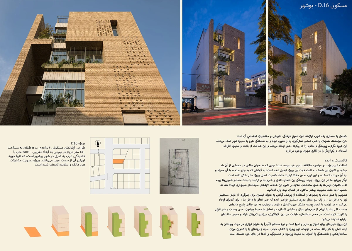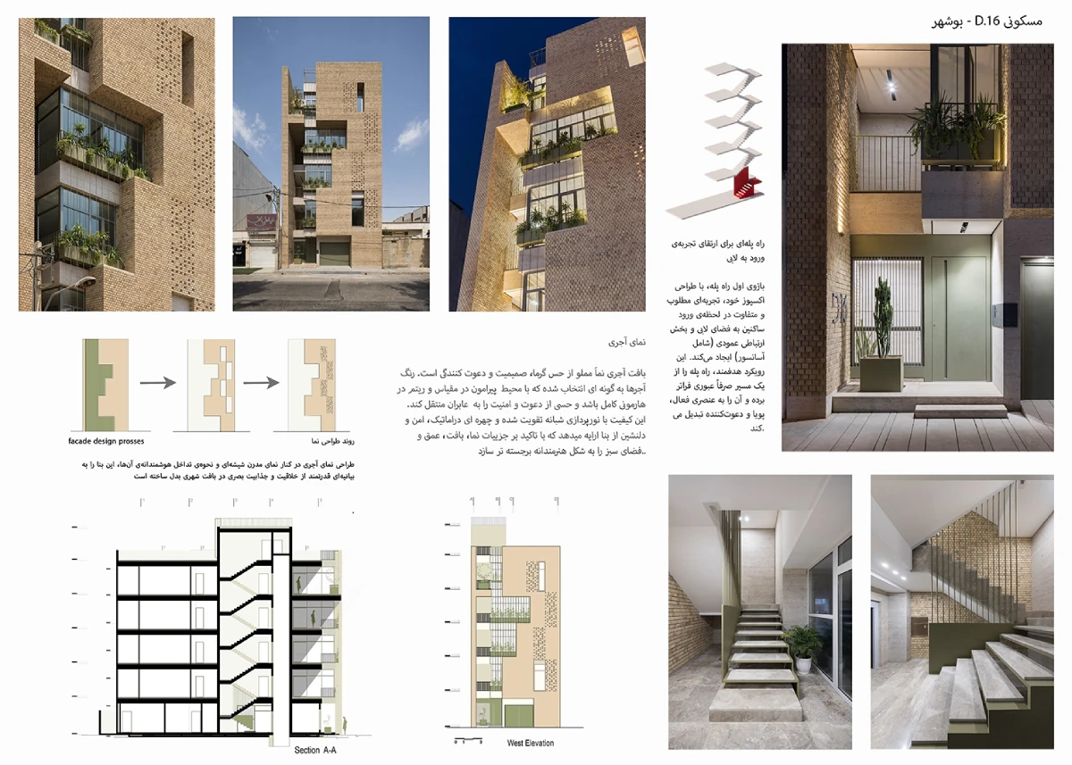 رتبه دوم در بخش معماری آپارتمانها: محمدمهدی باغبانی/ آپارتمان مسکونی دی-شانزده بوشهر