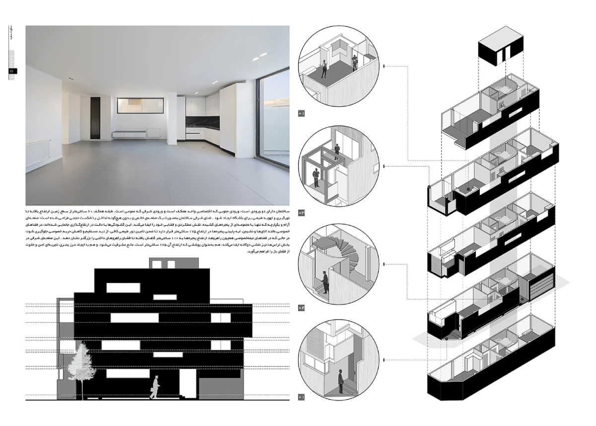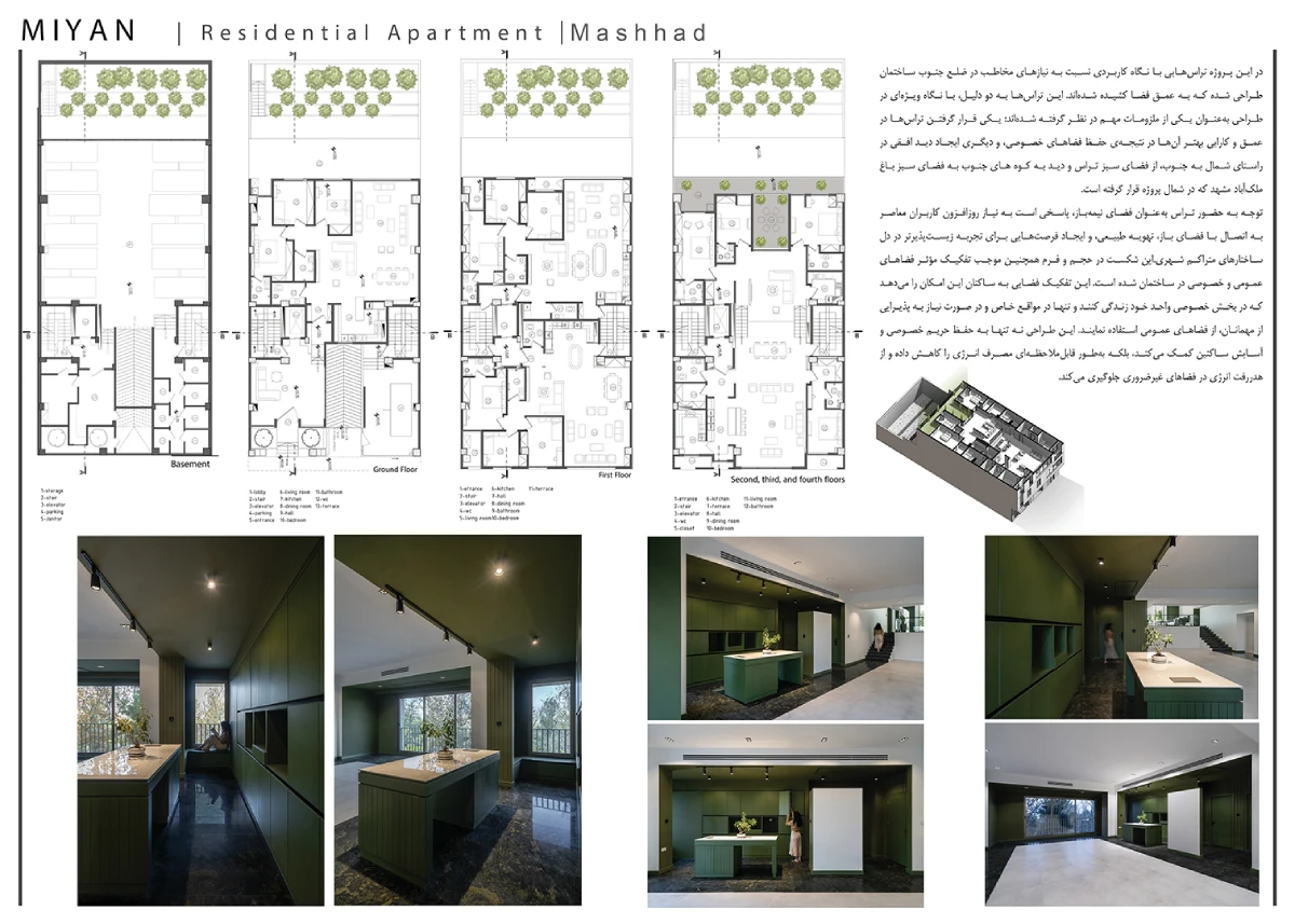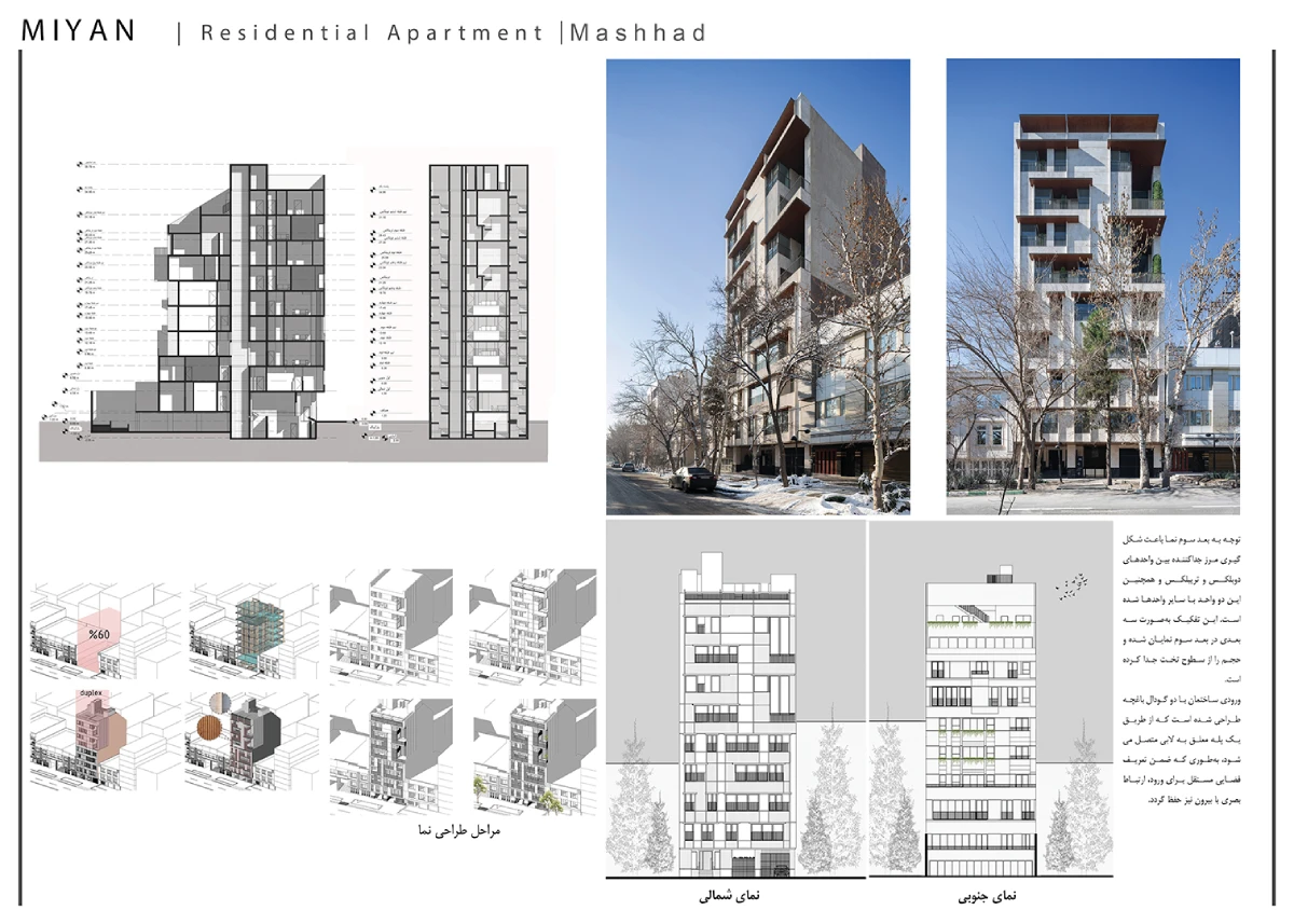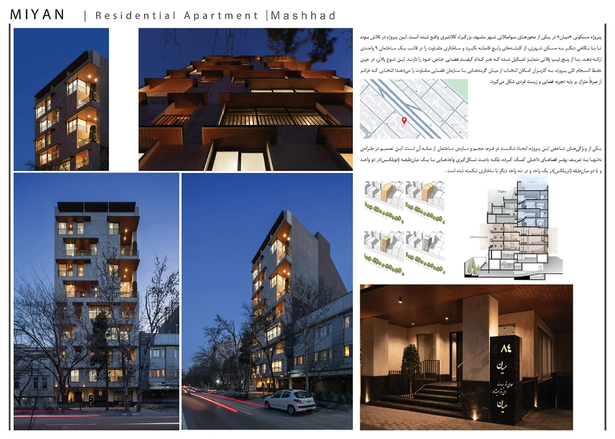 رتبه سوم مشترک در بخش معماری آپارتمانها: محمد ابراهیم زاده / ساختمان میان – مشهد