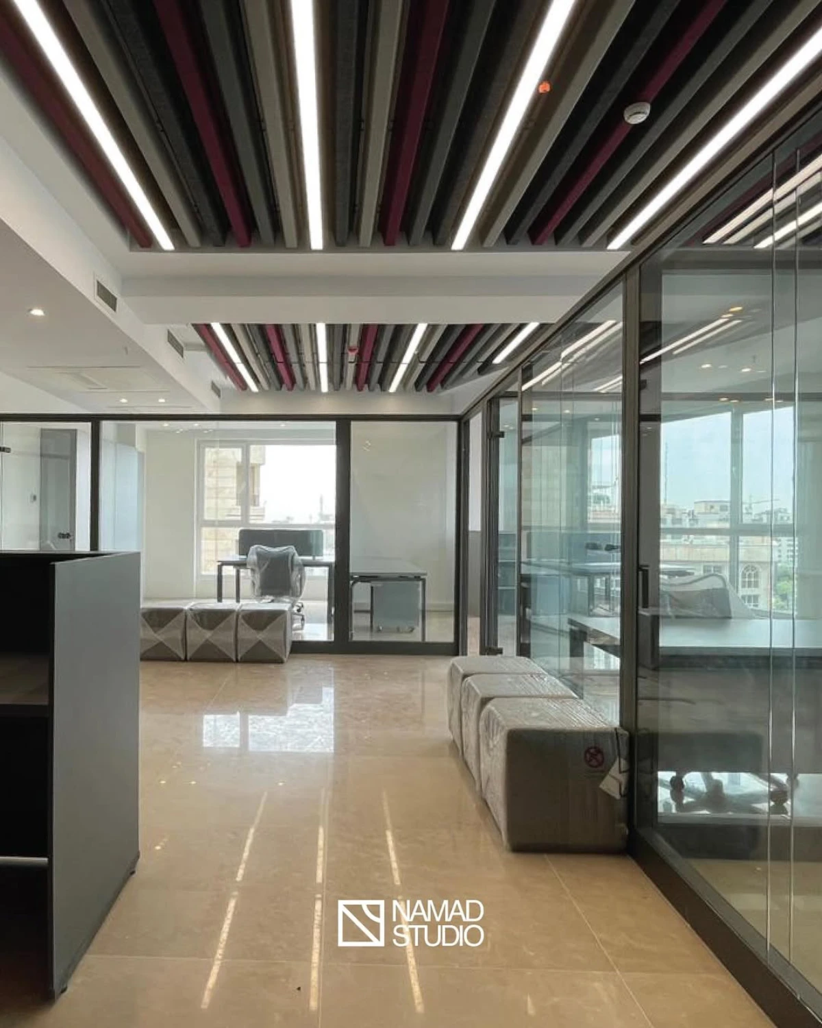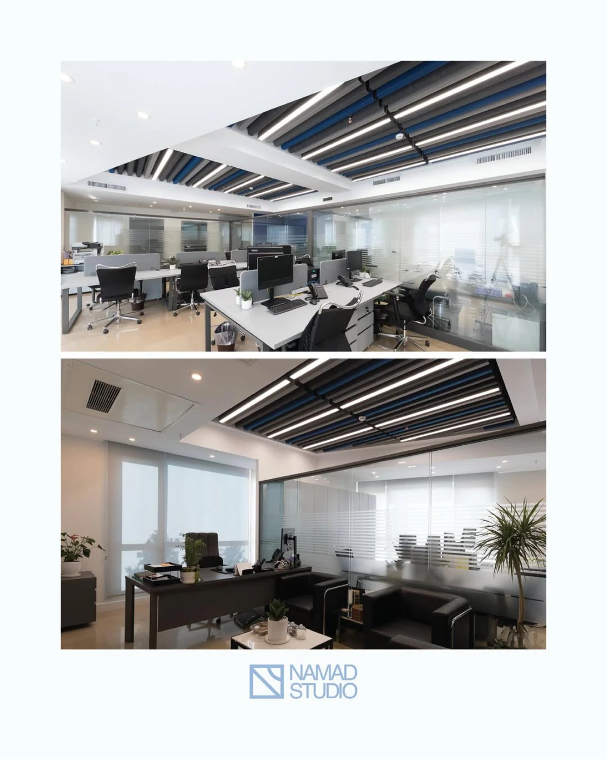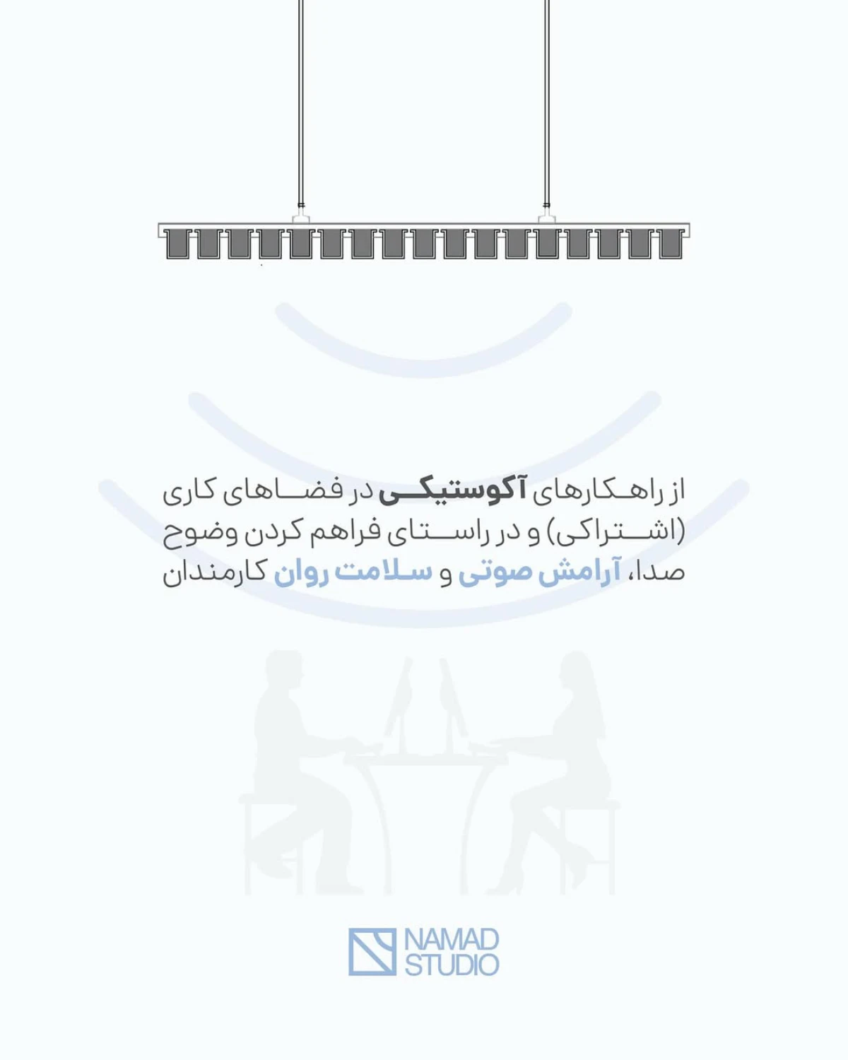 از راهـکارهای آکوستیکــی در فضــاهای کاری (اشــتراکی) و در راســتای فراهم کردن وضوح صدا، آرامش صوتی و سـلامت روان کارمندان است.