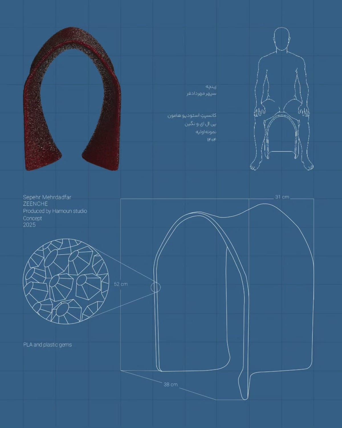 زینچه تنها بهعنوان یک نشیمنگاه عمل نمیکند؛ بلکه چارچوبی برای حضور، ارتباط و گردهمایی است. این پروژه توسط استودیو هامون ارائه شده است؛ استودیویی که طراحی را بهمثابه گفتوگویی میان فضا و مبلمان میبیند و در جستجوی راهحلهای نوآورانه برای پیوند کارکرد معاصر با روایتهای فرهنگی است.